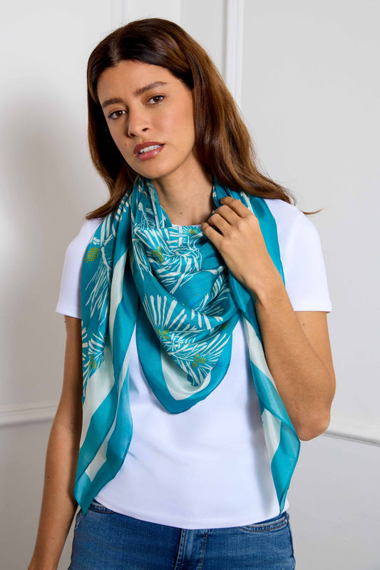 Teal & Ivory Pine Needles Luxury Silk Scarf 120cm * 120cm