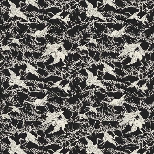 Vintage Japanese Cranes Ivory & Black Cotton Scarf 120cm * 120cm