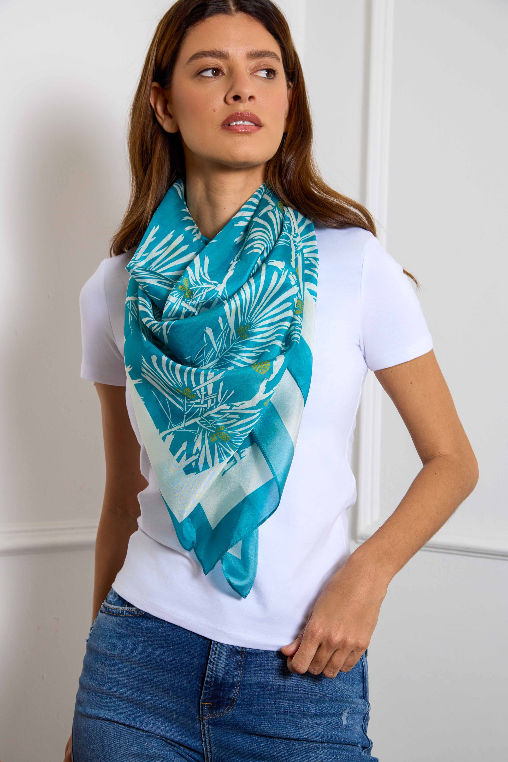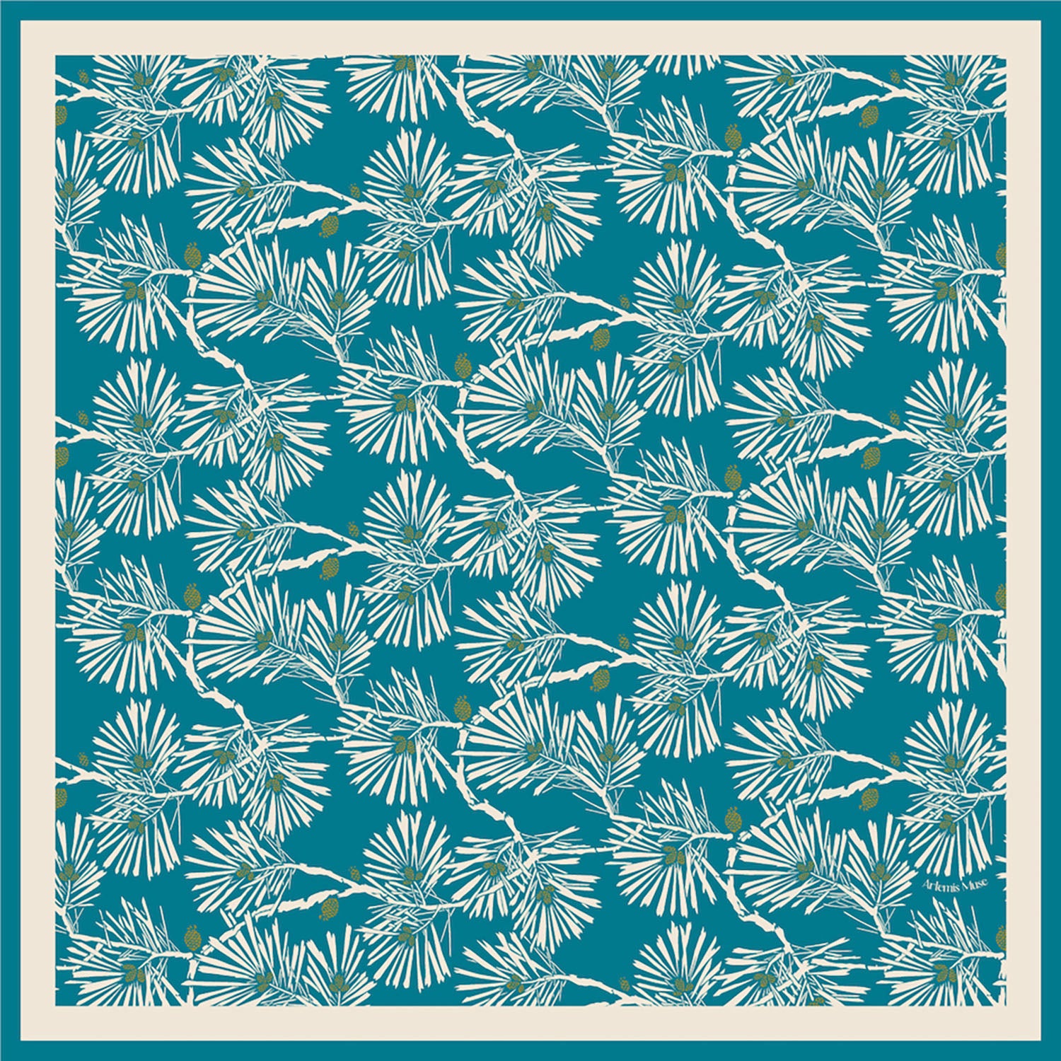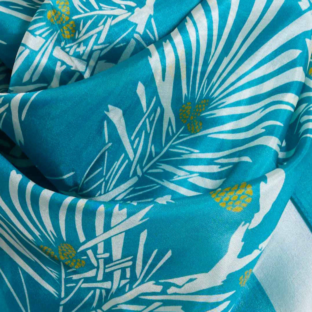 Teal & Ivory Pine Needles Luxury Silk Scarf 120cm * 120cm
